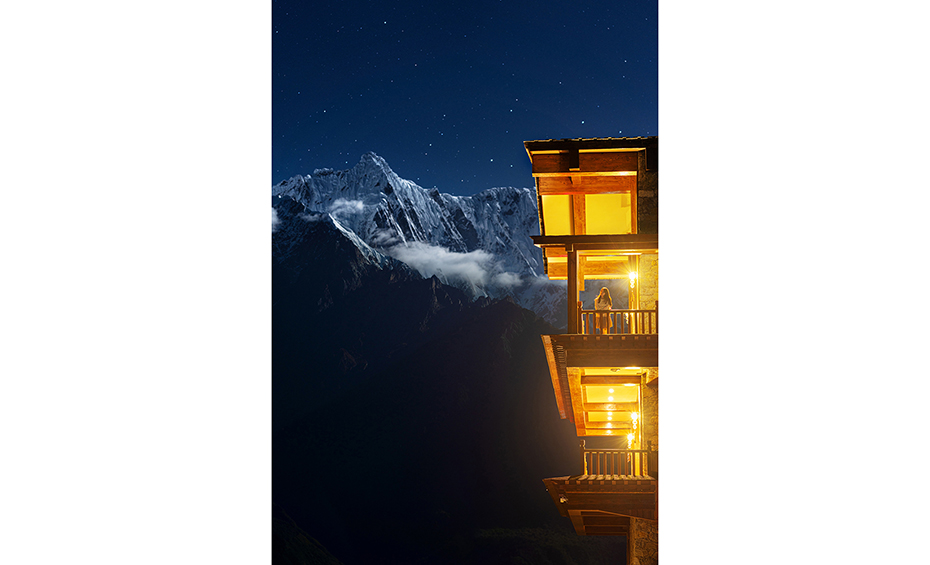 作品简介:我和女朋友共同构思了这张照片,请她站在三楼的露台上,背景是月色中的雪山和星辰,画面中的人物仿佛在聆听月夜雪山空灵的吟唱。